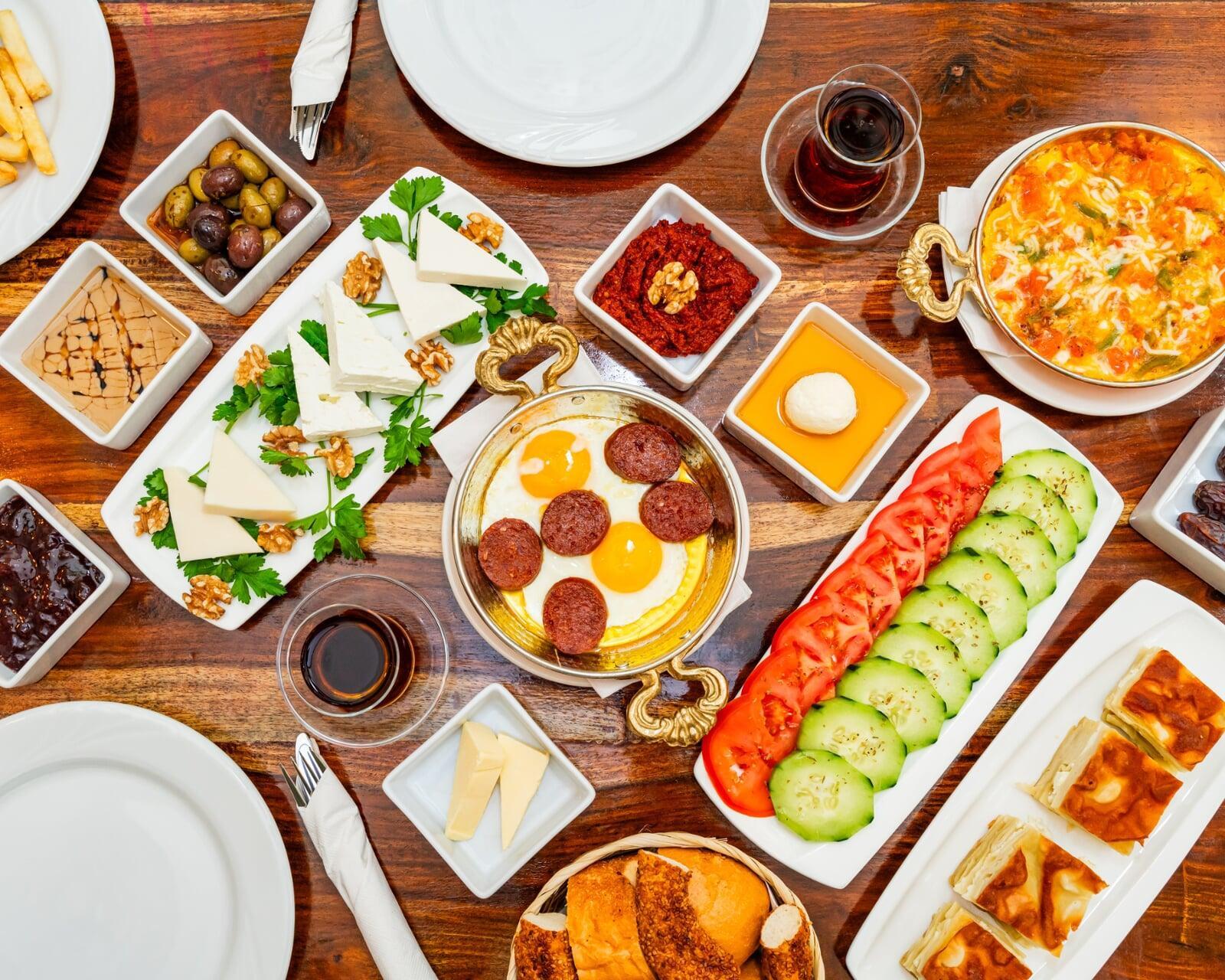 Turkish serpme breakfast is a rich and shareable dining experience that brings together fresh, carefully selected ingredients on one generous table. A variety of cheeses, olives, tomatoes and cucumbers, homemade jams, honey and clotted cream, warm bread, and traditional flavors come together to create a relaxed and flavorful start to the day. Every bite is meant to be enjoyed slowly, turning breakfast into a true social and cultural experience.